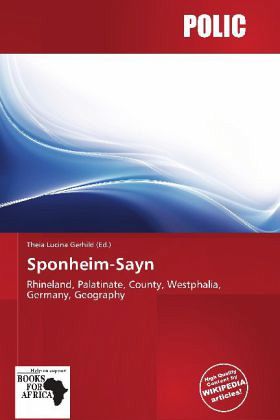 Please note that the content of this book primarily consists of articles available from Wikipedia or other free sources online. Sponheim-Sayn was a County of Rhineland-Palatinate and North Rhine-Westphalia, Germany. It was created as a partition of Sponheim-Eberstein in 1261, and it comprised the lands of the former County of Sayn. In 1283, it was divided into Sayn and Sayn-Homburg. Rhineland-Palatinate is one of the 16 states of the Federal Republic of Germany. It has an area of 19,846 square kilometres (7,663 sq mi) and about four million inhabitants. The capital is Mainz. English speakers also commonly refer to the state by its German name, Rheinland-Pfalz.