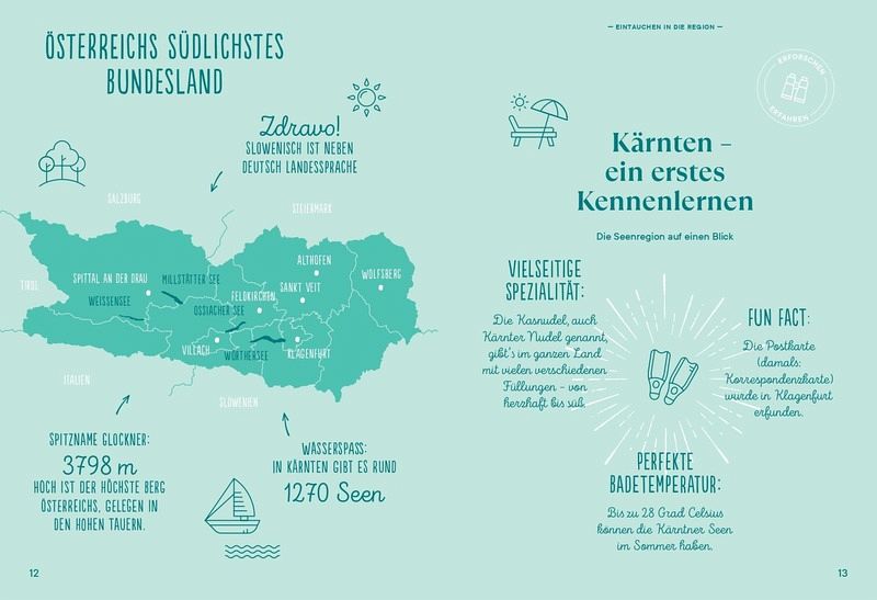 Duftende Bergluft beim Wandern, kitzelnde Gräser auf der warmen Haut und das erfrischende Kühl der Kärntner Seen - das Naturparadies Kärnten ist das Reiseziel für alle Aktiv-Urlauber:innen, Sommerfrischler:innen und Unternehmungslustige.Die umtriebige Claudia Lux verrät die besten Geheimtipps und Klassiker vom malerisch türkisen Weißensee über spektakuläre Steiganlagen an der Groppensteinschlucht bis zur ergreifenden Aussicht am Millstätter Granattor - und macht Ihre Urlaubsplanung zum Vergnügen. Selbst bei Schlechtwetter ist mit spontanen Ausflügen für gute Laune gesorgt: Lassen Sie sich verzaubern von der mittelalterlichen Welt auf Burg Hochosterwitz, tauchen Sie ein in faszinierende Klangwelten im Haus des Staunens oder nehmen Sie sich Zeit für Genussmomente in der Craigher Schokoladenmanufaktur. Entspannung und Urlaubskribbeln für Paare und die ganze Familie!