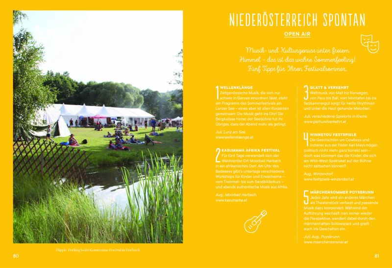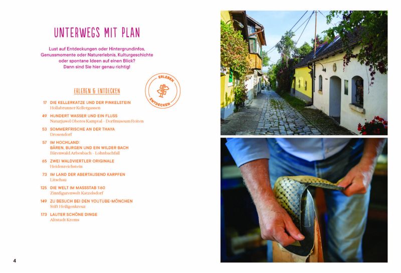 Das facettenreiche Niederösterreich mit seinen beliebten Ausflugsregionen lässt sich mit Plan - aber auch ganz spontan - erleben! Die immer neugierige Österreich- Kennerin Anita Ericson verrät uns ihre Lieblingsorte samt großen und kleinen Erlebnissen, die zum Erkunden, Erfahren und Genießen inspirieren. Ob entspannte Familienausflüge am Wasser, tierisch unterwegs mit Lama, Storch & Co, rasante Ausfahrten mit den Huskys oder eine Ballonfahrt mit Traumaussicht -Niederösterreich bietet für alle Abenteuerlustigen genau das Richtige. Mit originellen Kulinarik- Tipps und spontanen Ausflugsideen zeigen sich das Waldviertel, die Berge der Wiener Alpen und die Donau von ganz neuen Seiten.