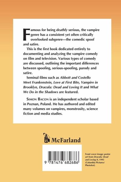 Famous for being deathly serious, the vampire genre has a consistent yet often critically overlooked subgenre--the comedic spoof and satire. This is the first book dedicated entirely to documenting and analyzing the vampire comedy on film and television. Various types of comedy are discussed, outlining the important differences between spoofing, serious-spoofing, parody and satire. Seminal films such as Abbott and Costello Meet Frankenstein, Love at First Bite, Vampire in Brooklyn, Dracula: Dead and Loving It and What We Do In the Shadows are featured. More importantly, this book demonstrates how comedy is central to both the common perception of the vampire and the genre's ever-evolving character, making it an essential read for those interested in the laughing undead and creatures that guffaw in the night.