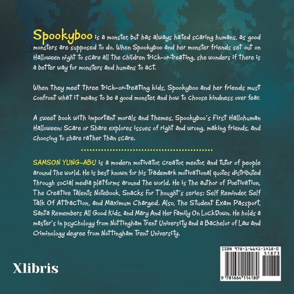 Spookyboo is a monster, but has always hated scaring humans, as good monsters are supposed to do. When Spookyboo and her monster friends set out on Halloween night to scare all the children trick-or-treating, she wonders if there is a better way for monsters and humans to act. When they meet three trick-or-treating kids, Spookyboo and her friends must confront what it means to be a good monster, and how to choose kindness over fear. A sweet book with important morals and themes, Spookyboo's First Hallohuman Halloween: Scare or Share explores issues of right and wrong, making friends, and choosing to share rather than scare.