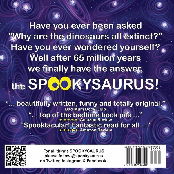 This is the first book in a series of book featuring the SPOOKYSAURUS which aims to teach facts in a fun & memorable way. This book focuses on the extinction of the dinosaurs & introduces the SPOOKYSAURUS for the first time. With colourful illustrations & a rhyming story it appeals to readers of all ages.