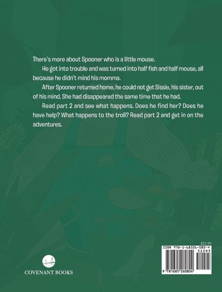 There's more about Spooner who is a little mouse. He got into trouble and was turned into half fish and half mouse, all because he didn't mind his momma. After Spooner returned home, he could not get Sissie, his sister, out of his mind. She had disappeared the same time that he had. Read part 2 and see what happens. Does he find her? Does he have help? What happens to the troll? Read part 2 and get in on the adventures.