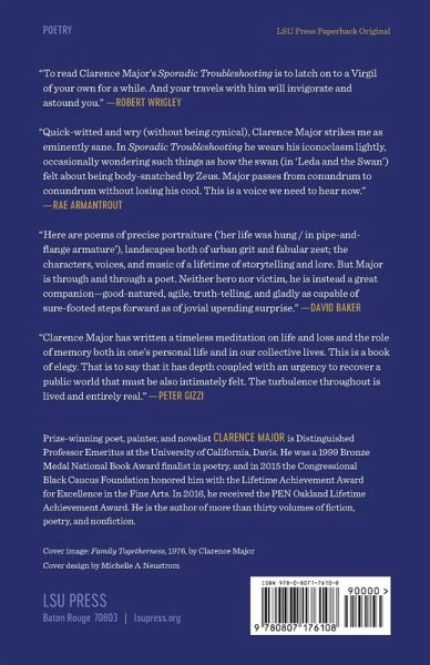 Deeply felt and brimming with humor and philosophical inquiry, Sporadic Troubleshooting, the latest volume from Clarence Major, both acknowledges poetic literary tradition and explores exciting new territories in language. Throughout, Major uses an improvisational technique, applying it to well-known mythological stories to enhance narrative and lyrical intensity. Breathtakingly vivid, these poems are testaments to universal subjects such as love, charity, nature, fear, survival, loyalty, justice, and beauty. Major's poems offer vigorous inquiries into life and art with a view toward renewal and transformation.