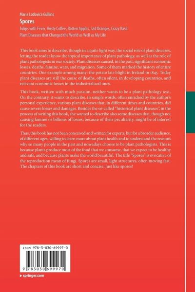 This book, written with much passion, neither wants to be a plant pathology text. On the contrary, it wants to describe, in simple words, often enriched by the author's personal experience, various plant diseases that, in different times and countries, did cause severe losses and damages. Besides the so-called "historical plant diseases", in the process of writing this book, she wanted to describe also some diseases that, though not causing famine or billions of losses, because of their peculiarity, might be of interest for the readers.