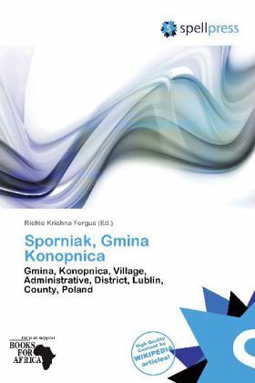 Please note that the content of this book primarily consists of articles available from Wikipedia or other free sources online. Sporniak is a village in the administrative district of Gmina Konopnica, within Lublin County, Lublin Voivodeship, in eastern Poland. Gmina Konopnica is a rural gmina (administrative district) in Lublin County, Lublin Voivodeship, in eastern Poland. Its seat is the village of Konopnica, which lies approximately 20 kilometres (12 mi) west of the regional capital Lublin. The gmina covers an area of 92.75 square kilometres (35.8 sq mi), and as of 2006 its total population is 11,001. Konopnica is a suburban borough of Lublin, some 10 km to the south west of the town. When driving from the town you can see the changes on the landscape from an urban agglomeration, through estates of singlefamily houses and, finally, to the typically Polish countryside of golden fields and green meadows.