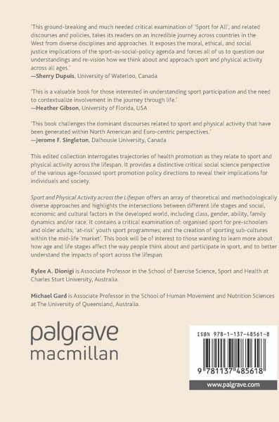 This edited collection problematizes trajectories of health promotion across the lifespan. It provides a distinctive critical social science perspective of the various directions taken by dominant policies in their approach to promoting sport for all ages. It offers an array of theoretical and methodologically diverse perspectives on this topic, and highlights the intersections between different life stages and social, economic and cultural factors in the developed world, including class, gender, ability, family dynamics and/or race.