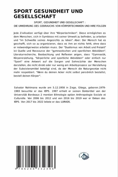 SPORT, GESUNDHEIT UND GESELLSCHAFT : DIE UMKEHRUNG DES GEBRAUCHS VON KÖRPERTECHNIKEN UND IHRE FOLGENJede Zivilisation verfügt über ihre "Körpertechniken". Diese ermöglichen es dem Menschen, sich in Symbiose mit seiner Umwelt zu befinden, zu arbeiten und "im Schweiße seines Angesichts zu leben". Aber: Der Mensch hat es geschafft, sich so zu organisieren, dass es ihm an nichts fehlt, ohne dass er notwendigerweise arbeiten muss. Der "Dualismus von Arbeit und Freizeit" ist Quelle und Ressource der "gymnastischen und sportlichen Aktivitäten". Literaturrecherche, Beobachtung und Reflexion zeigen, dass "Gymnastik, Körpererziehung, "körperliche und sportliche Aktivitäten" oder einfach nur "Sport" eine Antwort auf die Sorgen und Sehnsüchte der Menschen darstellen, die nicht direkt oder nur wenig am Arbeitsprozess zur Herstellung der Subsistenzmittel beteiligt sind, da der Mensch die Naturgesetze nicht mehr respektiert. "Wenn du deinen Acker nicht selbst persönlich bestellst, bestell deinen Körper".