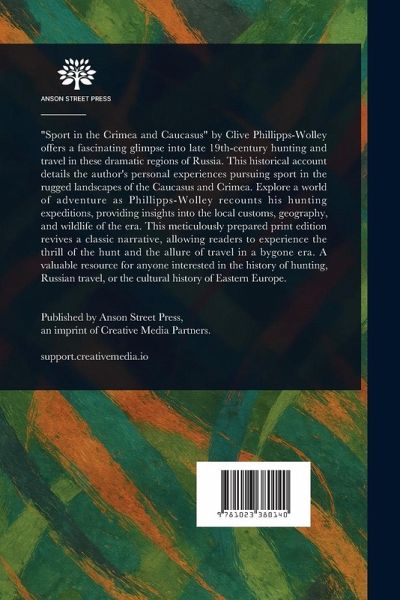"Sport in the Crimea and Caucasus" by Clive Phillipps-Wolley offers a fascinating glimpse into late 19th-century hunting and travel in these dramatic regions of Russia. This historical account details the author's personal experiences pursuing sport in the rugged landscapes of the Caucasus and Crimea. Explore a world of adventure as Phillipps-Wolley recounts his hunting expeditions, providing insights into the local customs, geography, and wildlife of the era. This meticulously prepared print edition revives a classic narrative, allowing readers to experience the thrill of the hunt and the allure of travel in a bygone era. A valuable resource for anyone interested in the history of hunting, Russian travel, or the cultural history of Eastern Europe. This work has been selected by scholars as being culturally important, and is part of the knowledge base of civilization as we know it. This work is in the public domain in the United States of America, and possibly other nations. Within the United States, you may freely copy and distribute this work, as no entity (individual or corporate) has a copyright on the body of the work. Scholars believe, and we concur, that this work is important enough to be preserved, reproduced, and made generally available to the public. We appreciate your support of the preservation process, and thank you for being an important part of keeping this knowledge alive and relevant.