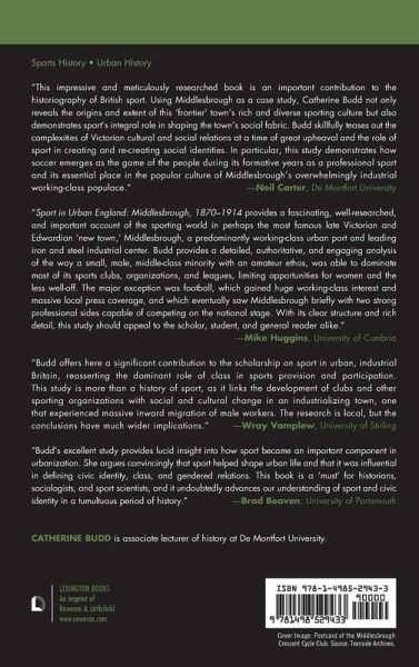 Introduction Chapter 1: "This Smoky Ironopolis of Ours": The Economic and Social Development of Middlesbrough Chapter 2: An Emerging Sporting Culture, 1870-84 Chapter 3: "A Noble Game Became Degraded": The Rise and Fall of Professional Football, 1885-94 Chapter 4: Amusement and Recreation: An Expanding Sporting Culture, 1885-1900 Chapter 5: "An Increasing and Often Unreasonable Demand for Pleasure": The Diversification of an Urban Sporting Culture, 1901-14 Chapter 6: "Going Football Mad": Football in Middlesbrough, 1895-1914 Conclusion Appendix 1: Ironopolis Football Club Shareholders Appendix 2: Middlesbrough Amateur Boating Club members, 1899-1901 Appendix 3: New members of Middlesbrough Golf Club, June 1909-December 1914 Appendix 4: Middlesbrough Bowling Club members, 1901 Appendix 5: Local Football Leagues Appendix 6: Involvement of Middlesbrough Councillors in Sport Appendix 7: Involvement of Middlesbrough Mayors in Sport Appendix 8: Involvement of Members of Parliament in Middlesbrough's Sport Appendix 9: Subscriptions