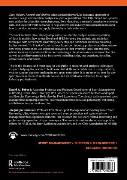 Sport Industry Research and Analysis offers a straightforward, no nonsense approach to research design and statistical analyses in sport organizations. This fully revised and updated new edition describes the research process, from identifying a research question to analyzing data, and uses real world scenarios to help students and industry professionals understand how to conduct research and apply the results in their wider work. The book includes clear, step-by-step instructions for the analysis and interpretation of data. It explains how to use Excel and SPSS for every key statistic and statistical technique, with screenshots illustrating every step and additional scenarios providing further context. "In Practice" contributions from sport industry professionals demonstrate how these practitioners use statistical analyses in their everyday tasks, and this new edition includes expanded sections on conducting a literature review and research ethics, as well as ancillary materials for instructors including slides, test questions, data files, answer sheets, and videos. This is the clearest and most easy-to-use guide to research and analysis techniques in sport, helping the reader to build essential skills and confidence in using statistics, vital to support decision-making in any sport enterprise. It is an essential text for any sport business research methods course, and an invaluable reference for all sport industry professionals.
