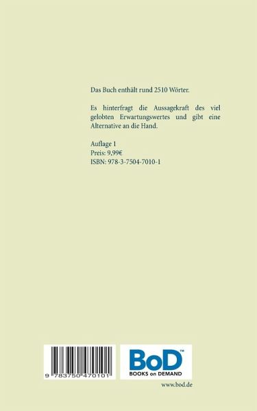 Das Buch enthält rund 2510 Wörter. Es hinterfragt die Aussagekraft des viel gelobten Erwartungswertes und gibt eine Alternative an die Hand.
