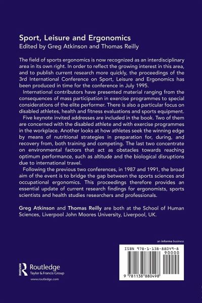 The field of sports ergonomics is now recognised as an interdisciplinary area in its own right. This book forms the proceedings of the 3rd International Conference on Sport, Leisure and Ergonomics, providing a particular focus on disabled athletes, health and fitness educations and sports equipment.