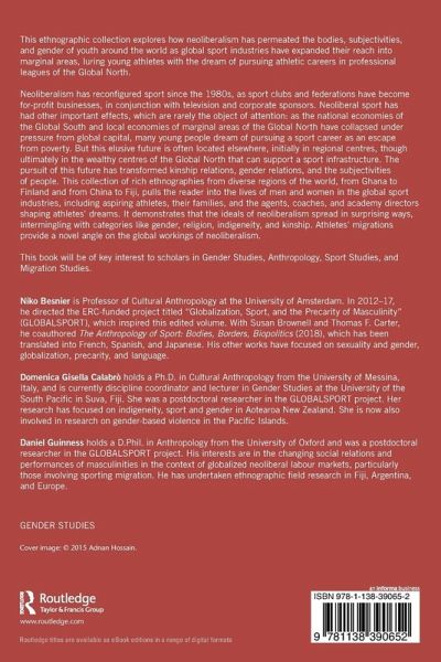 Niko Besnier is Professor of Cultural Anthropology at the University of Amsterdam. In 2012-17, he directed the ERC-funded project titled "Globalization, Sport, and the Precarity of Masculinity" (GLOBALSPORT), which inspired this edited volume. With Susan Brownell and Thomas F. Carter, he coauthored The Anthropology of Sport: Bodies, Borders, Biopolitics (2018), which has been translated into French, Spanish, and Japanese. His other works have focused on sexuality and gender, globalization, precarity, and language. Domenica Gisella Calabrò holds a Ph.D. in Cultural Anthropology from the University of Messina, Italy, and is currently discipline coordinator and lecturer in Gender Studies at the University of the South Pacific in Suva, Fiji. She was a postdoctoral researcher in the GLOBALSPORT project. Her research has focused on indigeneity, sport and gender in Aotearoa New Zealand. She is now also involved in research on gender-based violence in the Pacific Islands. Daniel Guinness holds a D.Phil. in Anthropology from the University of Oxford and was a postdoctoral researcher in the GLOBALSPORT project. His interests are in the changing social relations and performances of masculinities in the context of globalized neoliberal labour markets, particularly those involving sporting migration. He has undertaken ethnographic field research in Fiji, Argentina, and Europe.