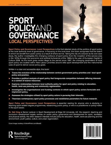 Sport Policy and Governance: Local Perspectives is essential reading for anyone who is studying or teaching sport-related degree programmes, researching public policy, or who is a practitioner or policy-maker in the sport sector.