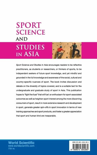 Sport Science and Studies in Asia encourages readers to be reflective practitioners, as students or researchers, or thinkers of sports, to be independent seekers of future sport knowledge, and yet mindful and grounded in a full knowledge and awareness of the social, cultural and country-specific nuances of sports. It invites discussions and debates on a diversity of topics covered, and is suitable text for undergraduate and graduate study of sports in Asia. This publication hopes to "light the fuse" that will fuel enthusiasm of sports-associated outcomes as well as heighten sport interest among the more discerning consumers of sport, result in more extensive research and development in sports, generate greater spin-offs in sport innovation in terms of new training approaches and sport products, and a greater appreciation that sports and human kind are inseparable.
