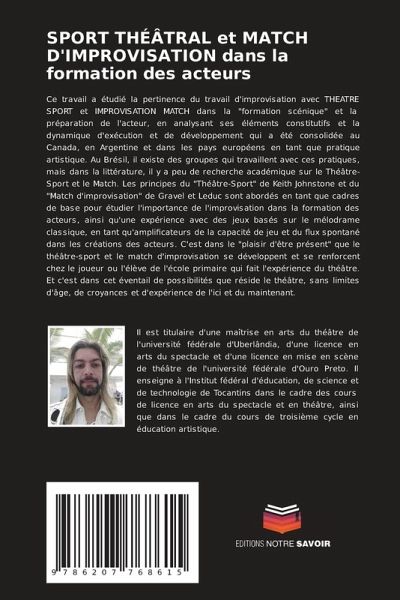 Ce travail a étudié la pertinence du travail d'improvisation avec THEATRE SPORT et IMPROVISATION MATCH dans la "formation scénique" et la préparation de l'acteur, en analysant ses éléments constitutifs et la dynamique d'exécution et de développement qui a été consolidée au Canada, en Argentine et dans les pays européens en tant que pratique artistique. Au Brésil, il existe des groupes qui travaillent avec ces pratiques, mais dans la littérature, il y a peu de recherche académique sur le Théâtre-Sport et le Match. Les principes du "Théâtre-Sport" de Keith Johnstone et du "Match d'improvisation" de Gravel et Leduc sont abordés en tant que cadres de base pour étudier l'importance de l'improvisation dans la formation des acteurs, ainsi qu'une expérience avec des jeux basés sur le mélodrame classique, en tant qu'amplificateurs de la capacité de jeu et du flux spontané dans les créations des acteurs. C'est dans le "plaisir d'être présent" que le théâtre-sport et le match d'improvisation se développent et se renforcent chez le joueur ou l'élève de l'école primaire qui fait l'expérience du théâtre. Et c'est dans cet éventail de possibilités que réside le théâtre, sans limites d'âge, de croyances et d'expérience de l'ici et du maintenant.