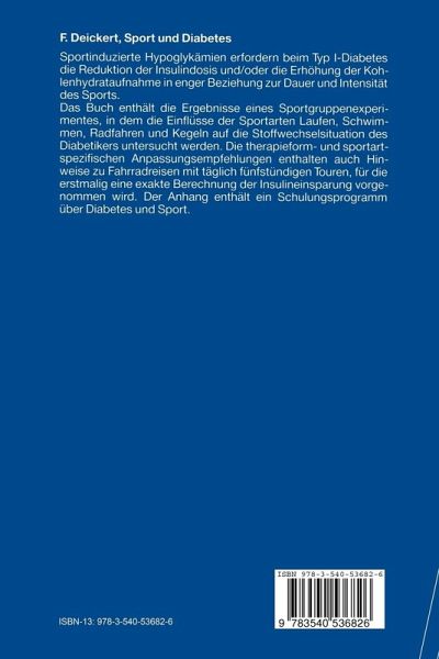 Sportinduzierte Hypoglykämien erfordern beim TypI-Diabetes die Reduktion der Insulindosis und/oder die Erhöhung der Kohlenhydrataufnahme in enger Beziehung zur Dauer und Intensität des Sports. Das Buch enthält die Ergebnisse eines Sportgruppenexperimentes, in dem die Einflüsse der Sportarten Laufen, Schwimmen, Radfahren und Kegeln auf die Stoffwechselsituation des Diabetikers untersucht werden. Die therapieform- und sportartspezifischen Anpassungsempfehlungen enthalten u. a. auch eine Untersuchung der Therapieanpassung bei Fahrradreisen mit täglich fünfstündigen Touren, die erstmalig eine exakte Berechnung der Insulineinsparung erlaubt. Der Anhang enthält ein Schulungsprogramm über Diabetes und Sport.