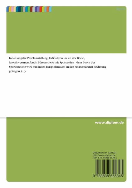 Fußballvereine an der Börse, Sportinvestmentfonds, Börsenspiele mit Sportaktien dem Boom der Sportbranche wird mit diesen Beispielen auch an den Finanzmärkten Rechnung getragen. Doch was steckt aus Anlegersicht wirklich dahinter? Sollten sich Sportfans getreu dem Motto des Börsen-Gurus Warren Buffet: Ich kaufe nur Unternehmen, die ich verstehe verhalten und können so durch ihr Fachwissen Geld mit Sportaktien verdienen?