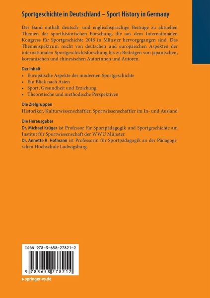 Der Band enthält deutsch- und englischsprachige Beiträge zu aktuellen Themen der sporthistorischen Forschung, die aus dem Internationalen Kongress für Sportgeschichte 2018 in Münster hervorgegangen sind. Das Themenspektrum reicht von deutschen und europäischen Aspekten der internationalen Sportgeschichtsforschung bis zu Beiträgen von japanischen, koreanischen und chinesischen Autorinnen und Autoren.