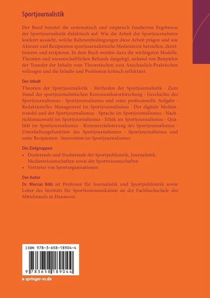 Der Band bereitet die systematisch und empirisch fundierten Ergebnisse der Sportjournalistik didaktisch auf: Wie die Arbeit der Sportjournalisten konkret aussieht, welche Rahmenbedingungen diese Arbeit prägen und wie Akteure und Rezipienten sportjournalistische Medientexte herstellen, distribuieren und rezipieren. In dem Buch werden dazu die wichtigsten Modelle, Theorien und wissenschaftlichen Befunde dargelegt, anhand von Beispielen der Transfer der Inhalte vom Theoretischen zum Anschaulich-Praktischen vollzogen und die Inhalte und Positionen kritisch reflektiert.