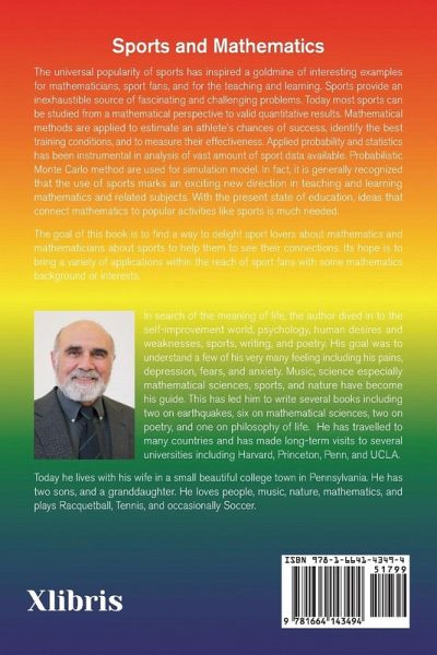 Sports and Mathematics The universal popularity of sports has inspired a goldmine of interesting examples for mathematicians, sport fans, and for the teaching and learning. Sports provide an inexhaustible source of fascinating and challenging problems. Today most sports can be studied from a mathematical perspective to valid quantitative results. Mathematical methods are applied to estimate an athlete's chances of success, identify the best training conditions, and to measure their effectiveness. Applied probability and statistics has been instrumental in analysis of vast amount of sport data available. Probabilistic Monte Carlo method are used for simulation model. In fact, it is generally recognized that the use of sports marks an exciting new direction in teaching and learning mathematics and related subjects. With the present state of education, ideas that connect mathematics to popular activities like sports is much needed. The goal of this book is to find a way to delight sport lovers about mathematics and mathematicians about sports to help them to see their connections. Its hope is to bring a variety of applications within the reach of sport fans with some mathematics background or interests.