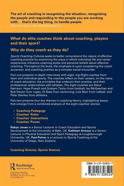 'The art of coaching is recognising the situation, recognising the people and responding to the people you are working with... that's the big thing, to handle people'. Steve Harrison, Coach, Middlesbrough Football Club. Responding to the fast growing subject in academic sports departments, this groundbreaking new coaching studies text offers a view that focuses the coach as a person and the coaching practice as a complex social encounter. Unlike existing titles in the field which look at coaching as a science, this book examines the personalities, histories, relationships and individual styles of eight coaches at the top of their profession. One-to-one interviews with some of the best-known and respected elite sports coaches include Steve Harrison, Hope Powell and Graham Taylor from football; Ian McGeechan and Bob Dwyer from rugby; Di Bass from swimming; Lois Muir from netball; and Peter Stanley from athletics; and form the basis for subsequent exploration of four key themes in sports coaching: * coaching pedagogy * the coach's role * the coach's interaction with athletes * the coach's power. This text will be of significant interest to students of coaching science and sports science, and will appeal to the considerable body of amateur sports coaches with an interest in the styles of those at the top.