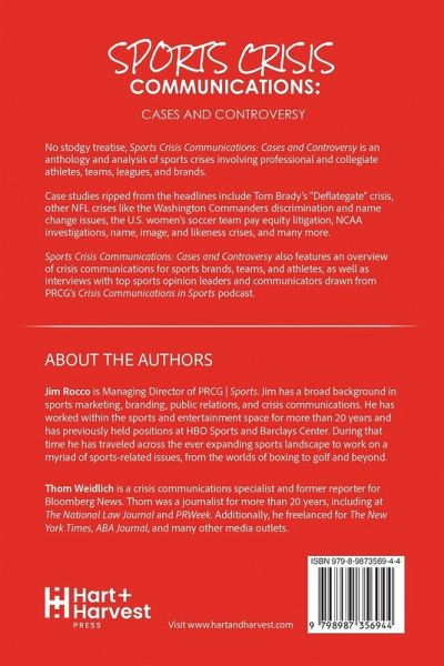 No stodgy treatise, Sports Crisis Communications: Cases and Controversy is an anthology and analysis of sports crises involving professional and collegiate athletes, teams, leagues, and brands. Case studies ripped from the headlines include Tom Brady's "deflategate" crisis, other NFL crises like the Washington Commanders discrimination and name change issues, the U.S. women's soccer team pay equity litigation, NCAA investigations, name, image, and likeness crises, and many more. Sports Crisis Communications: Cases and Controversy also features an overview of crisis communications for sports brands, teams, and athletes, as well as interviews with top sports opinion leaders and communicators drawn from PRCG's Crisis Communications in Sports podcast.