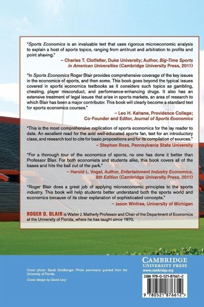 Sports Economics, the most comprehensive textbook in the field by celebrated economist Roger D. Blair, focuses primarily on the business and economics aspects of major professional sports and the NCAA. It employs the basic principles of economics to address issues such as the organization of leagues, pricing, advertising and broadcasting as well as the labor market in sports. Among its novel features is the candid coverage of the image and integrity of players, teams, managers and the leagues themselves, including cases of gambling, cheating, misconduct and steroids. Blair explains how economic decisions are made under conditions of uncertainty using the well-known expected utility model and makes extensive use of present value concepts to analyze investment decisions. Numerous examples are drawn from the daily press. The text offers ample boxes to illustrate sports themes, as well as extensive use of diagrams, tables, problem sets and research questions.