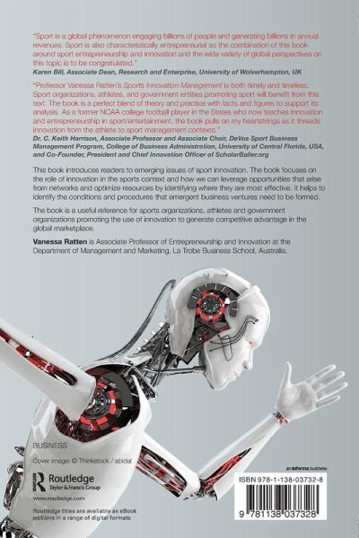 "Professor Vanessa Ratten's Sports Innovation Management is both timely and timeless. Sport organizations, athletes, and government entities promoting sport will benefit from this text. The book is a perfect blend of theory and practice with facts and figures to support its analysis. As a former NCAA college football player in the States who now teaches innovation and entrepreneurship in sport/entertainment, the book pulls on my heartstrings as it threads innovation from the athlete to sport management contexts." - Dr. C. Keith Harrison, Associate Professor and Associate Chair, DeVos Sport Business Management Program, College of Business Administration, University of Central Florida, USA, and Co-Founder, President and Chief Innovation Officer of ScholarBaller.org