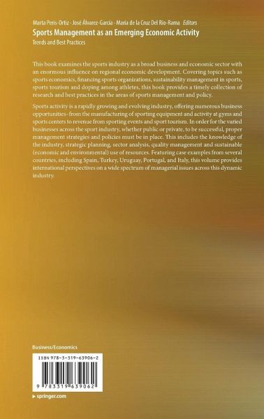 This book examines the sports industry as a broad business and economic sector with an enormous influence on regional economic development. Covering topics such as sports economics, financing sports organizations, sustainability management in sports, sports tourism and doping among athletes, this book provides a timely collection of research and best practices in the areas of sports management and policy. Sports activity is a rapidly growing and evolving industry, offering numerous business opportunities--from the manufacturing of sporting equipment and activity at gyms and sports centers to revenue from sporting events and sport tourism. In order for the varied businesses across the sport industry, whether public or private, to be successful, proper management strategies and policies must be in place. This includes the knowledge of the industry, strategic planning, sector analysis, quality management and sustainable (economic and environmental) use of resources. Featuring case examples from several countries, including Spain, Turkey, Uruguay, Portugal, and Italy, this volume provides international perspectives on a wide spectrum of managerial issues across this dynamic industry.