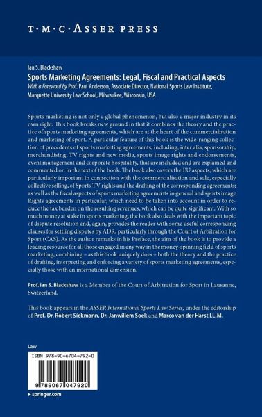 Sports marketing is not only a global phenomenon, but also a major industry in its own right. This book breaks new ground in that it combines the theory and the practice of sports marketing agreements, which are at the heart of the commercialisation and marketing of sport. A particular feature of this book is the wide-ranging collection of precedents of sports marketing agreements, including, inter alia, sponsorship, merchandising, TV rights and new media, sports image rights and endorsements, event management and corporate hospitality, that are included and are explained and commented on in the text of the book. The book also covers the EU aspects, which are particularly important in this context, especially collective selling, of Sports TV rights and the drafting of the corresponding agreements; as well as the fiscal aspects of sports marketing agreements in general and sports image rights agreements in particular, which need to be taken into account in order to reduce the tax burdenon the resulting revenues. With so much money at stake in sports marketing, the book also deals with the important topic of dispute resolution and, again, provides the reader with some useful corresponding clauses for settling disputes by ADR, particularly through the Court of Arbitration for Sport (CAS). As the author remarks in his Preface, the aim of the book is to provide a leading resource for all those engaged in any way in the money-spinning field of sports marketing, combining - as this book uniquely does - both the theory and the practice of drafting, interpreting and enforcing a variety of sports marketing agreements, especially those with an international dimension.