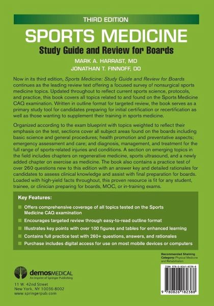 Preface I. General Topics Chapter 1. Overview of the Examination by Mark A. Harrast and Jonathan T. Finnoff Chapter 2. The Role of the Team Physician by Melissa Novak and Carly Day Basic Science of Sports Chapter 3. Exercise Physiology by Allison Schroeder and Jonathan T. Finnoff Chapter 4. Sports Biomechanics by Erek W. Latzka, Lyndsey Booker, and Mark A. Harrast Chapter 5. Pharmacology and Doping by Jeffrey L. Tanji Chapter 6. Principles of Musculoskeletal Rehabilitation by Aaron R. Hellem Chapter 7. Sports Medicine Procedures by Meredith Ehn, Michael Henrie, and Stuart Willick II. Health Promotion Preventive Aspects of Sports Medicine Chapter 8. Preparticipation Examination by D. Harrison Youmans and Tracy R. Ray Chapter 9. Strength and Conditioning Techniques by Jacob H. Resiner, Karl C. Erickson, and Jacob L. Sellon Chapter 10. Nutrition by Susan M. Kleiner, Abbie E. Smith-Ryan, and Cassandra E. Forsythe Chapter 11. Exercise Prescription, Exercise Testing, and Exercise Screening by Michelle L. Mullins, Jerome T. Nichols, and Kenneth R. Mautner Chapter 12. Event Administration by John Cianca Chapter 13. Braces and Protective Equipment by Wade Johnson and Joshua J. Pinkney III. Diagnosis, Management, and Treatment of Sports Injuries and Conditions Musculoskeletal Injuries and Conditions Chapter 14. General Concepts of Muscle and Tendon Injuries and Conditions by Alfred Gellhorn Chapter 15. Bone Injuries and Conditions by Karie Zach Chapter 16. Cartilage and Joint Injuries and Conditions by Brandee Waite and Jaire N. Saunders Chapter 17. Fracture and Dislocation Management by Meredith Ehn, Christopher Gee, and Stuart Willick Chapter 18. Cervical Spine Injuries and Conditions by Stephen C. Johnson Chapter 19. Emergency Evaluation and Management of Cervical Spine Injuries by Leah G. Concannon Chapter 20. Lumbar Spine Injuries and Conditions by Stephen Schaaf and David "D.J." Kennedy Chapter 21. Shoulder Injuries and Conditions by Ryan C. Kruse and Mederic M. Hall Chapter 22. Elbow and Forearm Injuries and Conditions by Steve J. Wisniewski Chapter 23. Hand and Wrist Injuries and Conditions by Joseph Ihm Chapter 24. Pelvis, Hip, and Thigh Injuries and Conditions by James Cole and Nathan Olafsen Chapter 25. Knee Injuries and Conditions by Kristian J. von Rickenbach, Ashwin N. Babu, and Cheri A. Blauwet Chapter 26. Lower Leg Injuries and Conditions by Sheyna E. Gifford and John P. Metzler Chapter 27. Ankle and Foot Injuries and Conditions by Tyler Slayman and Britt Marcussen Chapter 28. Pediatric Musculoskeletal Injuries and Conditions by Andrew J.M. Gregory Medical, Neurological, and Psychological Conditions Chapter 29. Environmental Illness by Marianne Luetmer and Chad Asplund Chapter 30. Exercise Associated Collapse by Christina Giacomazzi and Mark A. Harrast Chapter 31. Head, Ears, Eyes, Nose, and Throat Injuries and Conditions by Timothy W. Thomsen and Christopher P. Hogrefe Chapter 32. Chest Trauma: Thoracic Injuries and Conditions by Kristi Colbenson Chapter 33. Sports Cardiology by Henry Pelto and Jonathan Drezner Chapter 34. Sports Pulmonary by Amelia Hardeman and J. Tod Olin Chapter 35. Sports Gastroenterology and Abdominal Injuries and Conditions by Ashwin Rao Chapter 36. Sports Nephrology and Urology by Michael A. Fitzgerald and M. Kyle Smoot Chapter 37. Sports Dermatology by Mariah N. Sisson and Andrew R. Peterson Chapter 38. Sports Hematology by Ashley V. Austin and Kimberly G. Harmon Chapter 39. Sports Endocrinology by Spencer E. Richards and David G. Liddle Chapter 40. Sports Obstetrics and Gynecology by Heidi L. Walls and Heather M. Gillespie Chapter 41. Sports Infectious Diseases by David M. Siebert and John W. O'Kane Chapter 42. Sports Allergy and Immunology by Jarrod Harrall Chapter 43. Sports Rheumatology by Andrew L. Concoff Chapter 44. Sports Neurology by Jeffrey Kutcher and Sean C. Rose Chapter 45. Sports Concussion and Traumatic Brain Injury by Scott R. Laker, Jessica Pruente, and Derek Stokes Chapter 46. Neurovascular Injuries of the Upper and Lower Limbs by Debbie Lee, Jason Friedrich, and Venu Akuthota Chapter 47. Sports Psychology by Karen D. Cogan and Alexander Cohen Special Populations Chapter 48. The Master Athlete by Marni G. Hillinger and Jennifer A. Soo Hoo Chapter 49. The Pediatric Athlete by Holly J. Benjamin and David J. Jewison Chapter 50. The Female Athlete by Karie Zach Chapter 51. The Adaptive Athlete by Joshua Lider and Stuart Willick Hot Topics in Sports Medicine Chapter 52. Regenerative Medicine in Sports Medicine by Joshua Martin, Reina Nakamura, and Gerard Malanga Chapter 53. Sports Ultrasound by Mederic M. Hall Chapter 54. Exercise as Medicine by Mark E. Sederberg and Cindy Lin IV. Practice Test with Rationales