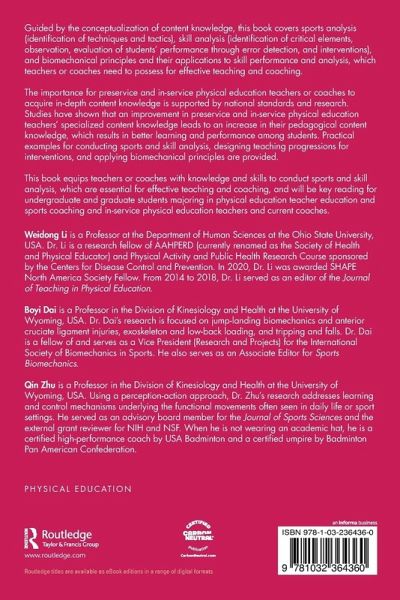 Guided by the conceptualization of content knowledge, this book covers sports analysis skill analysis, and biomechanical principles and their applications to skill performance and analysis, which teachers or coaches need to possess for effective teaching and coaching.