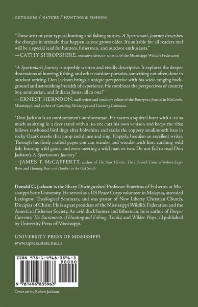 A Sportsman's Journey lyrically and spiritually connects readers with the natural world. Donald C. Jackson explores the rhythms and ways of hunting and fishing, particularly in America's Deep South, and in so doing helps readers understand and find meaning in why hunters and anglers venture far afield. Journeying alongside the author, readers will savor the magic of sunrises and the mystery of twilight. Hearts will quicken as deer drift from shadows and ducks circle a woodland pond. The ocean will challenge them as they fight large fish from the deck of a wave-tossed boat far out at sea. Restless winds will whisper messages during a spring squirrel hunt on a Mississippi farm. Bird dogs, old guns, old friends, and times shared with loved ones will remind anglers and hunters of those special, shared memories. Ancient forests and powerful rivers remind us of our fragile, ephemeral state. Quail hunts strengthen cherished relationships with companions. Encounters with a mountain man will take us into a world thought to have vanished generations ago. A gathering of anglers on a Gulf Coast fishing pier at night reminds us of those hidden communities that exist around us, and are often unrecognized or perhaps even unknown. Jackson reveals how all of us depend on the natural world and share very personal interactions with it and with each other. This book reminds us that rediscovering, resurrecting, and celebrating these primal linkages are the real reasons we explore the world.