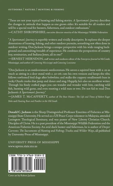 A Sportsman's Journey lyrically and spiritually connects readers with the natural world. Donald C. Jackson explores the rhythms and ways of hunting and fishing, particularly in America's Deep South, and in so doing helps readers understand and find meaning in why hunters and anglers venture far afield. Journeying alongside the author, readers will savor the magic of sunrises and the mystery of twilight. Hearts will quicken as deer drift from shadows and ducks circle a woodland pond. The ocean will challenge them as they fight large fish from the deck of a wave-tossed boat far out at sea. Restless winds will whisper messages during a spring squirrel hunt on a Mississippi farm. Bird dogs, old guns, old friends, and times shared with loved ones will remind anglers and hunters of those special, shared memories. Ancient forests and powerful rivers remind us of our fragile, ephemeral state. Quail hunts strengthen cherished relationships with companions. Encounters with a mountain man will take us into a world thought to have vanished generations ago. A gathering of anglers on a Gulf Coast fishing pier at night reminds us of those hidden communities that exist around us, and are often unrecognized or perhaps even unknown. Jackson reveals how all of us depend on the natural world and share very personal interactions with it and with each other. This book reminds us that rediscovering, resurrecting, and celebrating these primal linkages are the real reasons we explore the world.