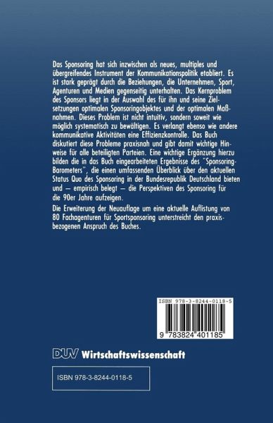 Aufgabenstellung und Vorgehensweise.- Sponsoring als Instrument der Kommunikationspolitik.- Das System des Sportsponsoring.- Die Auswahl des Sponsoring-Engagements als zentrales Entscheidungsproblem des Sportsponsoring.- Wirkung und Wirkungsmessung des Sportsponsoring.- Thesen zur Perspektive des Sportsponsoring.- Das Sponsoring-Barometer - Basiserhebung 1990.- Sportsponsoring-Agenturen in Deutschland.