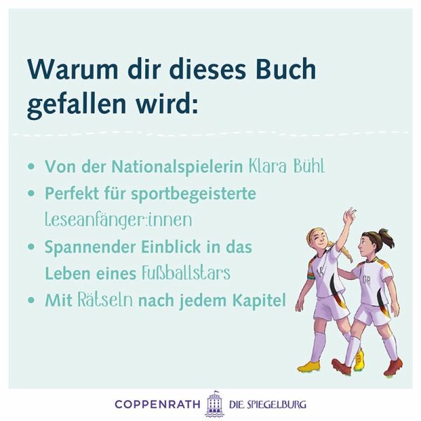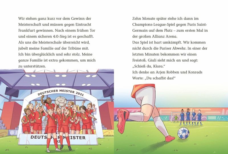 Nationalspielerin Klara Bühl erzählt spannend und ehrlich von ihrem Weg vom Mädchen in der Jungenmannschaft bis in die deutsche Frauen-Nationalmannschaft. Mit Leidenschaft, Ehrgeiz und Teamgeist meistert sie Herausforderungen und inspiriert junge Leserinnen und Leser, an ihre Träume zu glauben. Mit vielen vierfarbigen Illustrationen und exklusiven Einblicken in das Leben einer Profifußballerin.