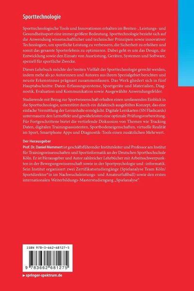 Dieses Lehrbuch möchte der breiten Vielfalt der Sporttechnologie gerecht werden, indem mehr als 30 Autorinnen und Autoren aus ihrem Spezialgebiet berichten und neuste Erkenntnisse prägnant zusammenfassen. Das Werk gliedert sich in fünf Hauptabschnitte: Daten-Erfassungssysteme, Sportgeräte und Materialien, Diagnostik, Evaluation und Kommunikation sowie Ausgewählte Anwendungsfelder.
