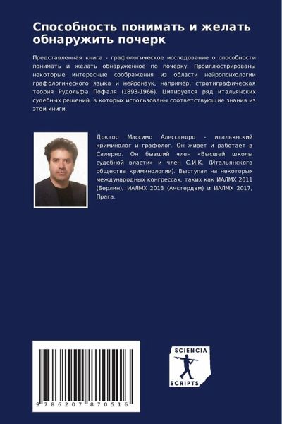 Predstawlennaq kniga - grafologicheskoe issledowanie o sposobnosti ponimat' i zhelat' obnaruzhennoe po pocherku. Proillüstrirowany nekotorye interesnye soobrazheniq iz oblasti nejropsihologii grafologicheskogo qzyka i nejronauk, naprimer, stratigraficheskaq teoriq Rudol'fa Pofalq (1893-1966). Citiruetsq rqd ital'qnskih sudebnyh reshenij, w kotoryh ispol'zowany sootwetstwuüschie znaniq iz ätoj knigi.