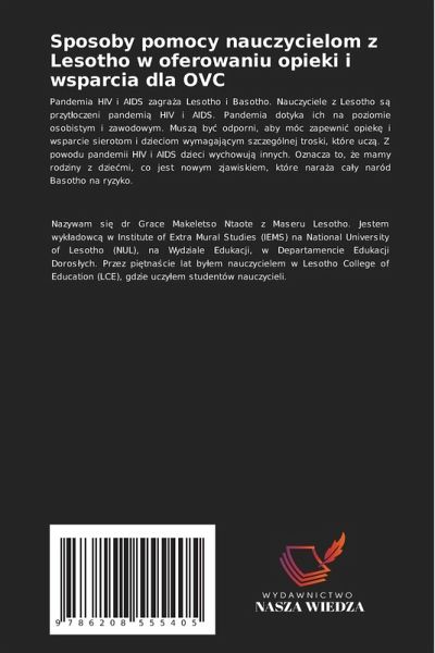 Pandemia HIV i AIDS zagräa Lesotho i Basotho. Nauczyciele z Lesotho s¿ przyt¿oczeni pandemi¿ HIV i AIDS. Pandemia dotyka ich na poziomie osobistym i zawodowym. Musz¿ by¿ odporni, aby móc zapewni¿ opiek¿ i wsparcie sierotom i dzieciom wymagaj¿cym szczególnej troski, które ucz¿. Z powodu pandemii HIV i AIDS dzieci wychowuj¿ innych. Oznacza to, ¿e mamy rodziny z dzie¿mi, co jest nowym zjawiskiem, które naräa cäy naród Basotho na ryzyko.