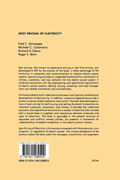 There is a need for fundamental changes in the ways society views electric energy. Electric energy must be treated as a commodity which can be bought, sold, and traded, taking into account its time-and space-varying values and costs. This book presents a complete framework for the establishment of such an energy marketplace. The framework is based on the use of spot prices. In general terms: o An hourly spot price (in dollars per kilowatt hour) reflects the operating and capital costs of generating, transmitting and distributing electric energy. It varies each hour and from place to place. o The spot price based energy marketplace involves a variety of utility-customer transactions (ranging from hourly varying prices to long-term, multiple-year contracts), all of which are based in a consistent manner on hourly spot prices. These transactions may include customers selling to, as well as buying from, the utility. The basic theory and practical implementation issues associated witha spot price based energy marketplace have been developed and discussed through a number of different reports, theses, and papers. Each addresses only a part of the total picture, and often with a somewhat different notation and terminology (which has evolved in parallel with our growing experience). This book was xvii xviii Preface written to serve as a single, integrated sourcebook on the theory and imple mentation of a spot price based energy marketplace.