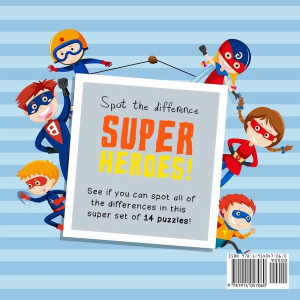 Welcome to Spot The Difference - Superheroes! See if you can spot what's different in these 14 super colorful puzzles! Each double-page contains two scenes that are almost identical - all you need to do is search for what's changed - a cape might've changed color, a hero could've vanished... or a shield could've grown in size! A great, interactive book for little ones who love to puzzle solve, ideal for rainy days and car journeys.