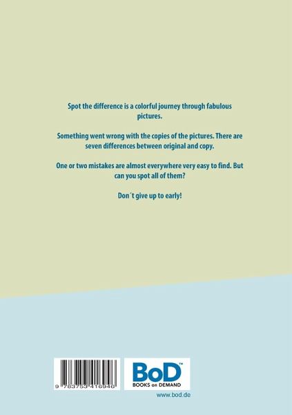 Spot the difference is a colorful journey through fabulous pictures.Something went wrong with the copies of the pictures. There are seven differences between original and copy.One or two mistakes are almost everywhere very easy to find. But can you spot all of them?Don´t give up to early!