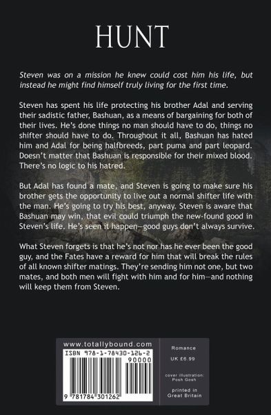 Steven was on a mission he knew could cost him his life, but instead he might find himself truly living for the first time. Steven has spent his life protecting his brother Adal and serving their sadistic father, Bashuan, as a means of bargaining for both of their lives. He's done things no man should have to do, things no shifter should have to do. Throughout it all, Bashuan has hated him and Adal for being halfbreeds, part puma and part leopard. Doesn't matter that Bashuan is responsible for their mixed blood. There's no logic to his hatred. But Adal has found a mate, and Steven is going to make sure his brother gets the opportunity to live out a normal shifter life with the man. He's going to try his best, anyway. Steven is aware that Bashuan may win, that evil could triumph the new-found good in Steven's life. He's seen it happen-good guys don't always survive. What Steven forgets is that he's not nor has he ever been the good guy, and the Fates have a reward for him that will break the rules of all known shifter matings. They're sending him not one, but two mates, and both men will fight with him and for him-and nothing will keep them from Steven.