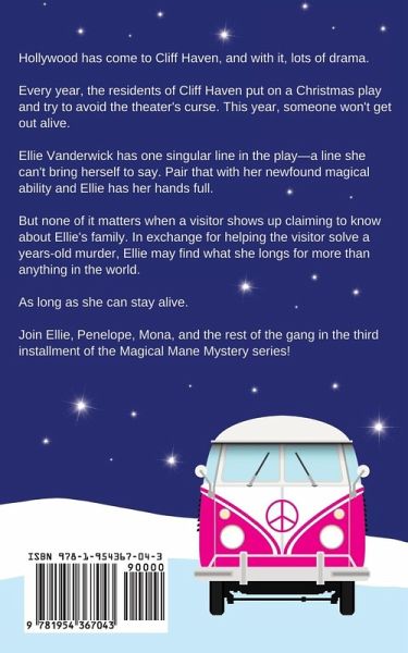 Hollywood has come to Cliff Haven, and with it, lots of drama. Every year, the residents of Cliff Haven put on a Christmas play and try to avoid the theater's curse. This year, someone won't get out alive. Ellie Vanderwick has one singular line in the play-a line she can't bring herself to say. Pair that with her newfound magical ability and Ellie has her hands full. But none of it matters when a visitor shows up claiming to know about Ellie's family. In exchange for helping the visitor solve a years-old murder, Ellie may find what she longs for more than anything in the world. As long as she can stay alive. Join Ellie, Penelope, Mona, and the rest of the gang in the third installment of the Magical Mane Mystery series!