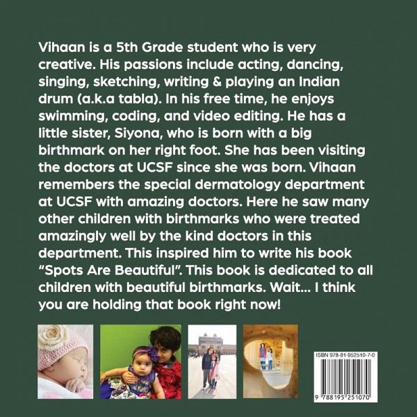 Meet Tia, a cute little baby, with spots on her face. When her brother sees her for the first time, he immediately loves her spots but has many questions. Join Tia and her supportive family in their journey of embracing the unique beauty of kids born with birthmarks. This book will teach young readers to accept and love children with birthmarks.