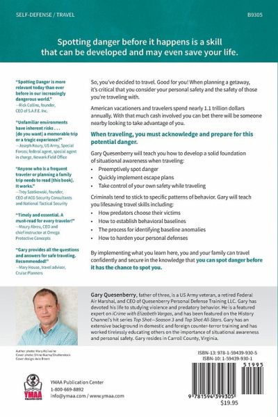 AWARDS FINALIST—Travel, American Book Fest 2023 Spotting danger before it happens while traveling alone or with your family is a skill that can be developed and may even save your life. So, you've decided to go on vacation. Good for you! Unfortunately, when planning a getaway, you must think about more than just the fun stuff; you must also consider your personal safety and the safety of those you're traveling with. This is where situational awareness comes into play. Domestic and international vacationers spend nearly 1.1 trillion dollars annually in the U.S. alone. Any time there's that much cash involved you can expect there will be someone nearby looking to take advantage of you. When traveling, you must acknowledge and prepare for this potential danger. In Spotting Danger for Travelers, you will learn how to develop a solid foundation of situational awareness, preemptively spot danger, quickly implement escape plans, and take control of your own safety while traveling. Details include: * Conducting a threat assessment on your destination * Properly securing your home while away * Taking travel precautions on the road and in the air * Securing your temporary accommodations * Building situational awareness techniques specific for traveling * Becoming familiar with your surrounding area * Developing an appropriate cultural awareness * Dealing with so called “common” encounters * Creating contingency plans when “incidents” occur Regardless of your location, criminals tend to stick to specific patterns of behavior. This book will teach you important skills including how predators choose their victims, how to establish behavioral baselines, the process for identifying baseline anomalies, and how to harden your personal defenses. By implementing what you learn here, you can travel confidently and be secure with the knowledge that you can spot danger before it has the chance to spot you. “Today more than ever, it is imperative that we pay close attention to our surroundings and learn how to interpret what’s happening around us. Tragic events can often be both predictable and preventable.” —Gary Quesenberry Federal Air Marshal (Ret.)