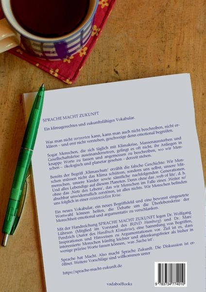 Was man nicht verworten kann, kann man auch nicht beschreiben, nicht erklären und erst nicht verstehen, geschweige denn emotional begreifen.Sogar Menschen, die sich täglich mit Klimakrise, Massenaussterben und Gesellschaftskrise auseinandersetzen, gelingt es oft nicht, ihr Anliegen in knappe Worte zu fassen und angemessen zu beschreiben, wo wir Menschen ökologisch und planetar gesehen derzeit stehen. Bereits der Begriff Klimaschutz erzählt die falsche Geschichte: Wir Menschen müssen nicht das Klima schützen, sondern uns selbst, unsere Mitmenschen, unsere Kinder sowie sämtliche nachfolgenden Generationen. Und alles Lebendige auf diesem Planeten. Denn ohne das web of life, d. h. ohne das Netz des Lebens, das wir Menschen im Falle eines Weiter so absehbar unwiderruflich zerstören, ist alles nichts. Wir Menschen befinden uns folglich in einer existenziellen Krise. Ein neues Vokabular, ein neues Begriffsfeld und eine bewusst eingesetzte Wortwahl können helfen, die Debatte um die Überlebenskrise der Menschheit emotional und argumentativ zu verschlanken.Mit der Handreichung SPRACHE MACHT ZUKUNFT legen Dr. Wolfgang Lührsen (Mitglied im Vorstand des BUND Hamburg) und Dr. Marc Pendzich (Autor des Handbuch Klimakrise), eine Sammlung von Begriffen, Inspirationen und Hinweisen zu Argumentationen vor. Ziel ist es, dass interessierte Menschen künftig leichter und ablenkungsfreier als bisher in wenige präzise Worte fassen können, was Sache ist.Sprache hat Macht. Also macht Sprache Zukunft. Die Diskussion ist eröffnet. Weitere Vorschläge sind willkommen unter https://sprache-macht-zukunft.de