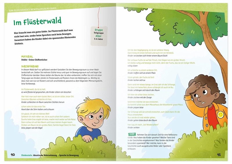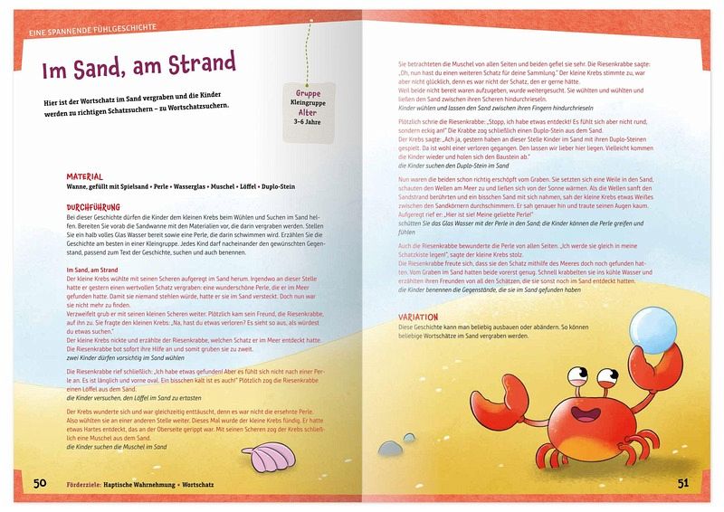 Sprache zum Anfassen - Ganzheitliche Sprachförderung in der Kita Rein ins Sprachabenteuer! Dieses Praxisheft bietet Erzieherinnen, Pädagoginnen und Tageseltern abwechslungsreiche Ideen für eine spielerische Sprachförderung im Kita-Alltag. Die erprobten Spiele, Mitmachverse und Bewegungsgeschichten lassen sich ohne großen Aufwand umsetzen und sind sofort einsatzbereit. Dabei geht es nicht nur um die Erweiterung des Wortschatzes und das spielerische Verstehen grammatikalischer Zusammenhänge. Die Kinder werden auch zu einem aktiven, freien und ungehemmten Sprechen angeregt - eine wichtige Grundkompetenz, die sie nachhaltig stärkt. Gleichzeitig können sie erste Buchstaben kennenlernen und Sprache buchstäblich "anfassen" und erleben. Ob Bewegungsgeschichte, Rhythmusspiel oder Reim: Die Angebote verbinden Sprache mit Bewegung und Sinneserfahrungen, was den Kindern den Zugang besonders leichtmacht. So wird Sprachförderung nicht zur trockenen Übung, sondern zum lebendigen Erlebnis, das den ganzen Körper einbezieht. Ein Heft voller schnell umsetzbarer Ideen, das Erzieher*innen eine wertvolle Unterstützung für die tägliche Arbeit bietet und den Kindern Freude am Sprechen vermittelt.